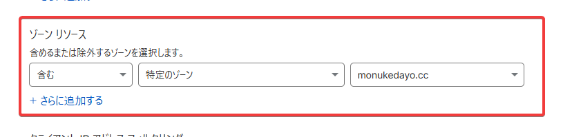 ゾーンリソースでドメインを指定して、